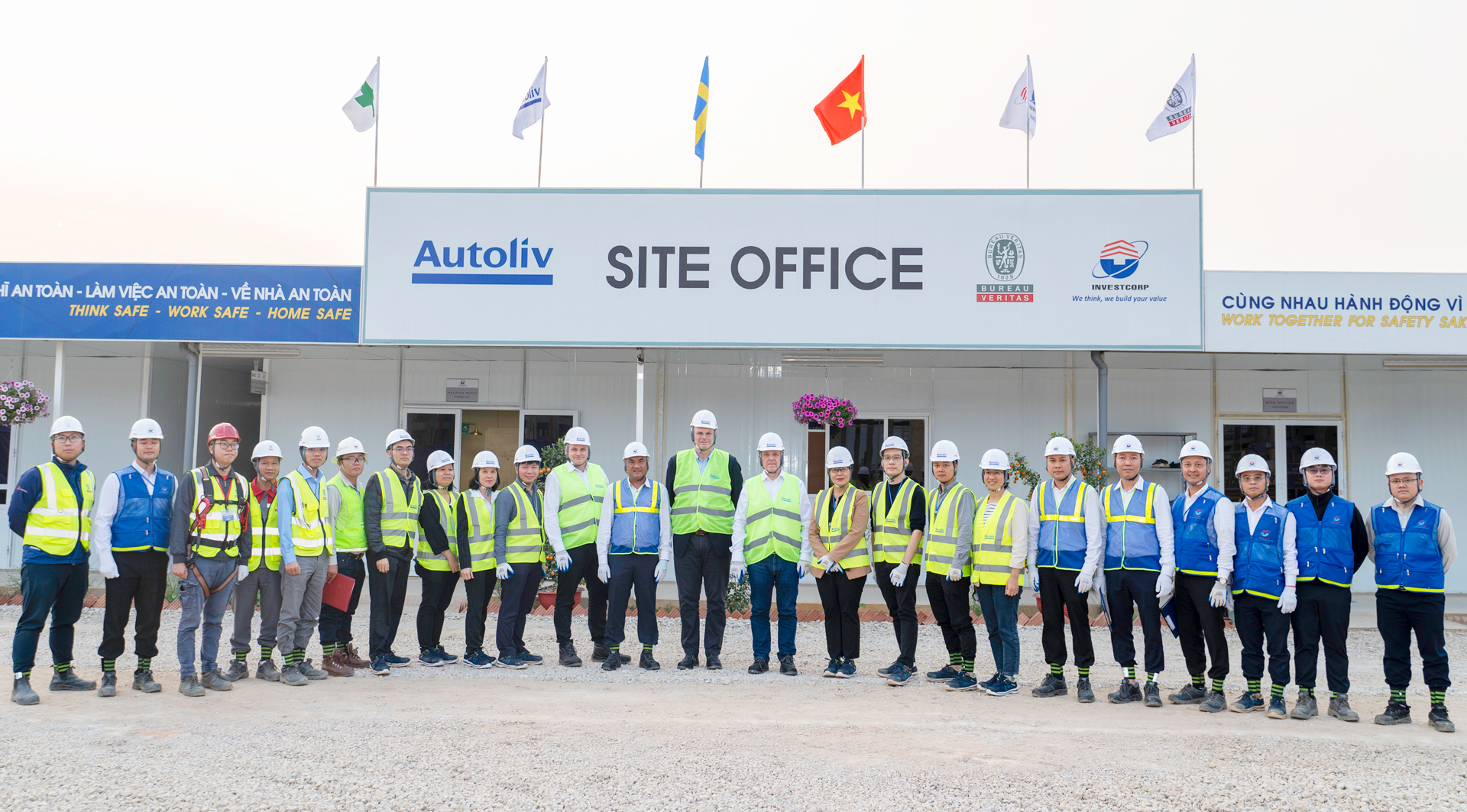 Với phương châm “An toàn – Chất lượng – Tiến độ – Thân thiện với môi trường” được đặt lên hàng đầu, INVESTCORP đã triển khai dự án đảm bảo theo tiêu chuẩn toàn cầu của Autoliv, đáp ứng xuất sắc các yêu cầu của Chủ đầu tư và dành được nhiều lời khen ngợi từ Mr. Jan Carlson – Chủ tịch tập đoàn Autoliv.