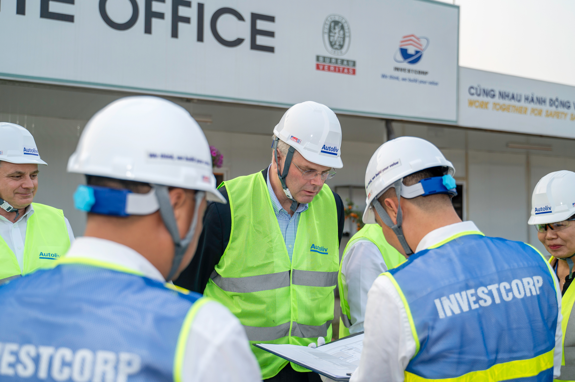 Chuyến thăm của lãnh đạo cấp cao Tập đoàn Autoliv nhằm mục đích kiểm tra chất lượng, tiến độ an toàn thi công của Tổng thầu INVESTCORP GROUP, đặc biệt đảm bảo các yêu cầu khắt khe của tập đoàn Autoliv đối với các dự án đầu tư xây dựng trên toàn cầu.